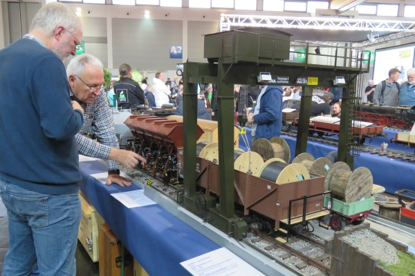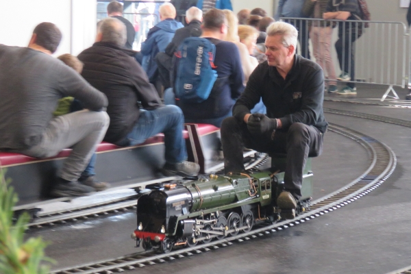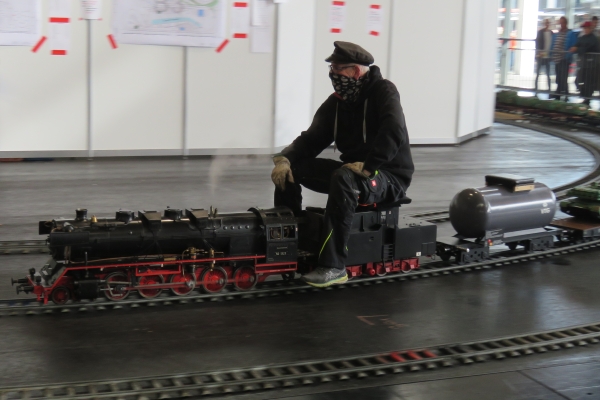 Gekauft habe ich dieses Mal nichts. Die gebrauchte rote Kipplore für die Gartenbahn, für die ich mich interessierte, wurde nur geringfügig günstiger angeboten als Neuware beim hiesigen Händler. Den von Udo gebaute blaue Tankwaggon habe ich auf der 5-Zoll-Strecke gesehen; er hatte somit den Besitzer gewechselt. Nach wie vor ist dieser Wagen ein sehr schönes und einmaliges Eisenbahnfahrzeug. Und Übrigens sollten die Weichenstellhebel mit der Hand umgelegt werden und nicht mit dem Fuß. Es war eine sehr gute Zeit auf der Messe mit recht vielen guten Gesprächen und Begegnungen. Ja, es war richtig, hierher gekommen zu sein; besser wäre es natürlich mit eigenem Zug gewesen. Und Susanne wäre noch gerne viel länger geblieben. Der Termin für die 24. Faszination Modellbau vom 30. Oktober bis 1. November 2026 steht bei mir schon im Kalender. |