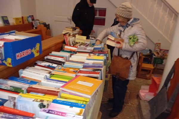 Üblicherweise war der Andrang der Kinder bei der Eisenbahn zum Weihnachtsmarkt so groß, dass zwei Züge benötigt wurden; mit den beiden Zügen von Udo und mir klappte stets der Personentransport. Je nach Situation war ein Zug ausreichend, so war am Samstag abwechselnd entweder Udos Zug oder meiner auf der Strecke. Aber am Sonntag waren während des großen Andrangs beide Garnituren voll im Einsatz. Und über Nacht standen unsere Eisenbahnsachen trocken in der Kirche. Natürlich mussten diese vor dem Gottesddienst wieder nach draußen aufs Gleis. |