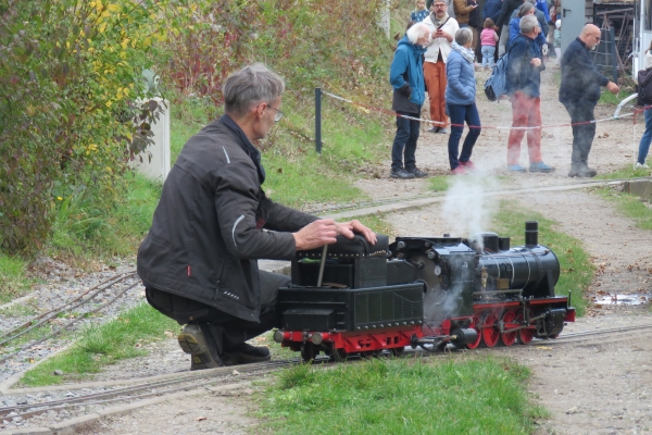 | Unter anderem habe ich erneut Hans getroffen. Er erzählte mir, dass er bei Helmut Erle in der Werkstatt zu Besuch war und seine E94 im Bau gesehen hatte; sie soll noch dieses Jahr fertig werden. Hans will beim Aufbau der Gleise zum Echtdampfhallentreffen in Friedrichshafen helfen und dann am Freitag als Besucher dabei sein. So könnten wir uns ggf. treffen, da ich ebenfalls am Freitag als Besucher zur Messe nach Friedrichshafen fahren möchte. Ein schöner und guter Eisenbahntag war das für mich in Karlsruhe. |