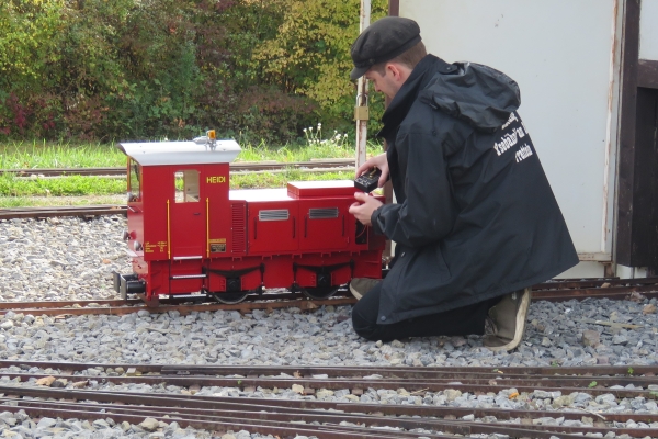 | Die Dampflokomotive BR55 hatte Probleme und konnte nicht für die Personenbeförderung eingesetzt werden. Auch an anderen Lokomotiven wurde immer mal wieder gearbeitet, repariert und getüftelt. Als ich am Ende des Fahrtages meine E22 wieder in ihre Kiste verladen wollte, stellte ich fest, dass auch bei ihr ein Griff neben der Tür lose hing. Da hatte sich eine Mutter gelöst und die Schraube ist aus der Halterung gerutscht. |