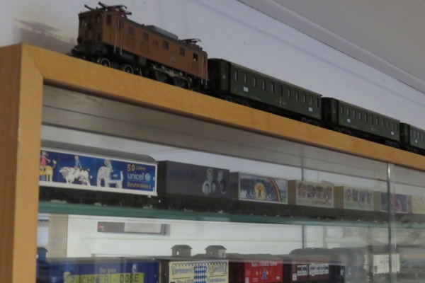 Ganz generell habe ich das Problem, dass ich einfach zu viele Züge auf der Anlage habe (schließlich fielen beim Umbau sieben Abstellgleise im Schattenbahnhof weg). Alle Durchgangsgleise sind besetzt und es ist sehr schwierig, einen neuen Zug aus dem Schattenbahnhof heraus zu holen und fahren zu lassen. Irgendwie muss ich dafür sorgen, dass zumindest ein Durchgangsgleis (somit eine Strecke) dauerhaft frei bleibt um für einen Zugwechsel mit dem Schattenbahnhof flexibel zu bleiben. Da muss mindestens ein Zug von der Anlage runter und woanders „geparkt“ werden; vielleicht „auf“ der Vitrine, denn „in“ der Vitrine ist auch kein Platz mehr… . |