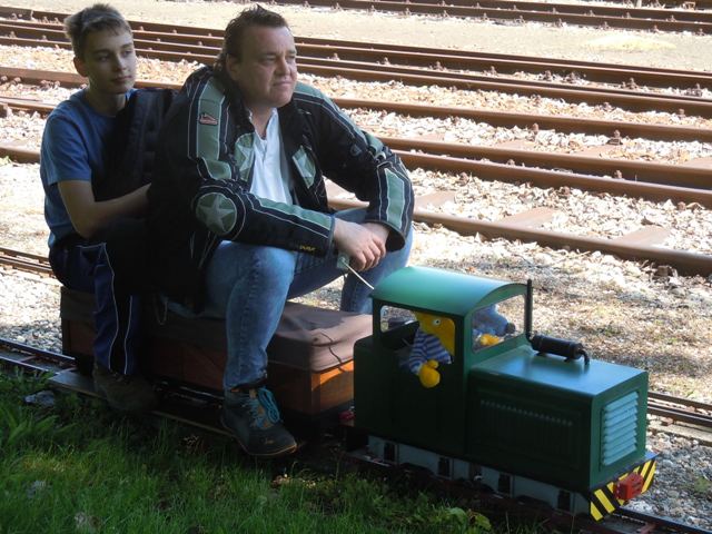 Ausgerechnet als meine Frau mit auf dem Bärenzug fuhr, hatte ich in der Bahnhofseinfahrt eine größere Entgleisung, da unter dem Zug eine Weiche den Fahrweg veränderte. Ob die Weiche einen Stellbefehl verspätet durchführte oder ob jemand auf den falschen Knopf zum falschen Zeitpunkt gedrückt hatte, blieb offen. Außer einem Schrecken hatte ich bisher keine bleibenden Schäden festgestellt. Am Abend beim Einräumen der Fahrzeuge fehlte dann doch an einem Waggon ein Rangiertritt. Dieser kann aber auch während des Tages irgendwo auf der Strecke verloren gegangen sein; letztlich muss ein neuer bestellt und wieder angeschraubt werden. |