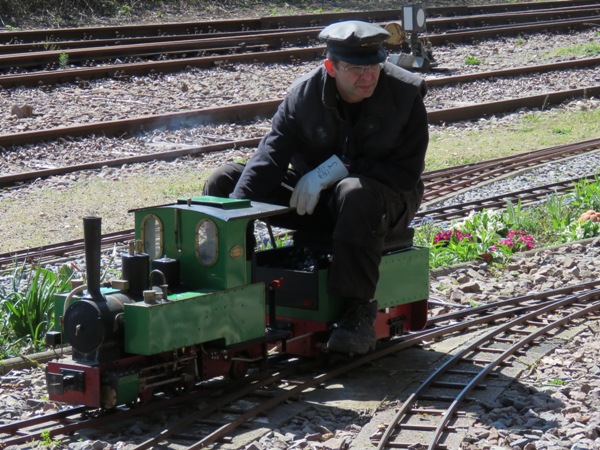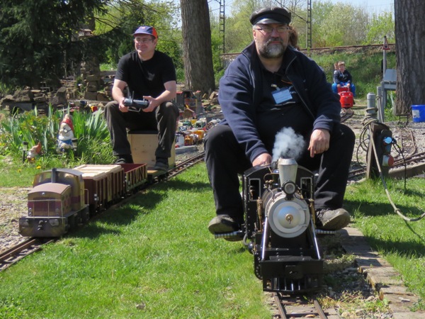 Jörg hatte mit seiner grünen Feldbahnlok schon wieder Pech. Zunächst hatte er eine Undichtheit am Pfeifenventil und die Lok pfiff ständig. Der Dampfverlust war zwar nicht so groß, aber das ständige Pfeifen konnte so nicht bleiben. Nachdem er hier für Abhilfe gesorgt hatte, brach einige Runden später die Kolbenstange am linken Zylinder. Da war der Fahrtag mit der Dampflokomotive für ihn leider schnell vorbei. |
