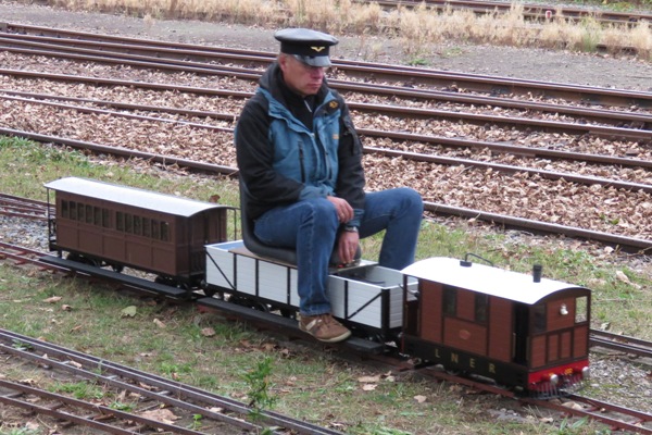 | Und wieder sah ich Sitzgelegenheiten zum Eisenbahnfahren, welche über eine Rückenlehne verfügten. Mit Karlheinz verabredete ich eine Probefahrt mit seinem Sitz aber ich kam unerwartet zu einem Probesitzen auf dem gepolsterten Lokführergestühl der gasgefeuerten Rossdorfer Lok (gefahren bin ich aber nicht). Damit war der Gedanke bezüglich eines Sitzes zur Schonung des Rückens wieder aktuell; es bleibt die Frage, ob dieser höher oder tiefer installiert werden sollte. Bis zur neuen Fahrsaison wird diese Frage wohl beantwortet sein. |
