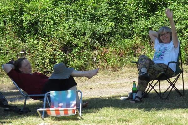 Gleich zu Beginn des Fahrtages gab es eine Überraschung, allerdings auf der LGB-Anlage von Frank. Einer seiner Züge fuhr auf dem am Vortag verlegten Gleis in einen Erdhügel. Und das war nichts anderes als ein frischer Maulwurfshügel, den ein Maulwurf genau neben der Strecke aufgeworfen hatte und nun das Gleis blockierte. Nein, die Lokomotive kam nicht drüber und die Erde musste von Hand abgetragen werden. |