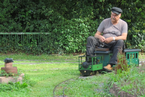 Wolfgang und Udo traf ich, beide waren heute ohne eigene Fahrzeuge da. Sie hatten gestern eine Dampflokomotive getestet, die zuvor eine sehr lange Standzeit hatte und die Wolfgang nun wieder fahrbar gemacht hatte. Sie stand nun wieder wie neu unter Dampf und Druck und war seidenweich gefahren; sehr zur Freude der beiden. Zudem hatte Wolfgang besuch aus Schweden, ein Eisenbahnfreund hatte von ihm eine Dampflokomotive T3 gekauft, ausprobiert und gleich mitgenommen. |