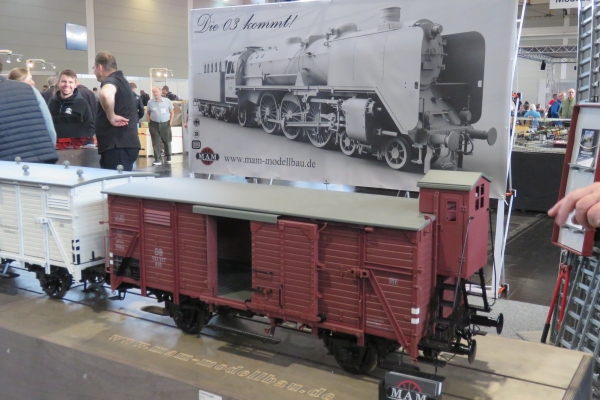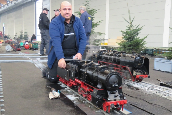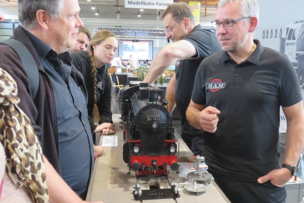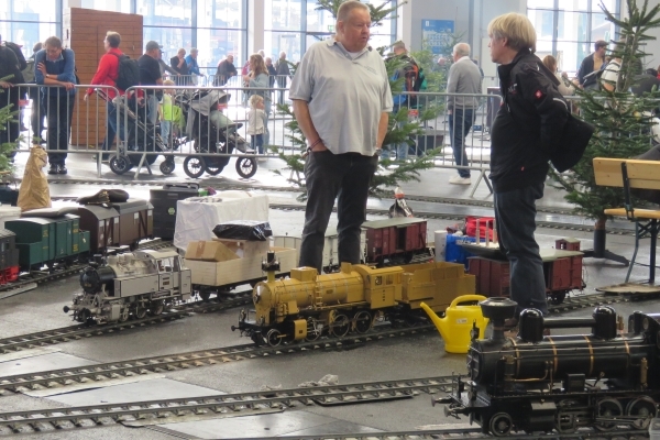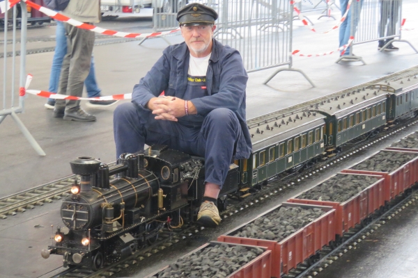 Gekauft habe ich dieses Mal nichts. Die gebrauchte rote Kipplore für die Gartenbahn, für die ich mich interessierte, wurde nur geringfügig günstiger angeboten als Neuware beim hiesigen Händler. Den von Udo gebaute blaue Tankwaggon habe ich auf der 5-Zoll-Strecke gesehen; er hatte somit den Besitzer gewechselt. Nach wie vor ist dieser Wagen ein sehr schönes und einmaliges Eisenbahnfahrzeug. Und Übrigens sollten die Weichenstellhebel mit der Hand umgelegt werden und nicht mit dem Fuß. Es war eine sehr gute Zeit auf der Messe mit recht vielen guten Gesprächen und Begegnungen. Ja, es war richtig, hierher gekommen zu sein; besser wäre es natürlich mit eigenem Zug gewesen. Und Susanne wäre noch gerne viel länger geblieben. Der Termin für die 24. Faszination Modellbau vom 30. Oktober bis 1. November 2026 steht bei mir schon im Kalender. |