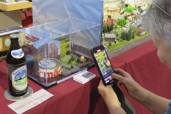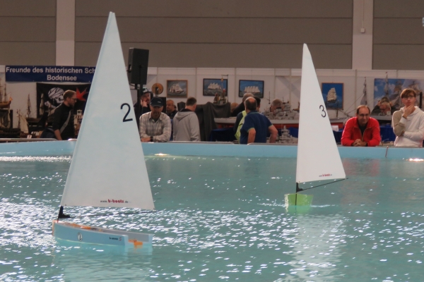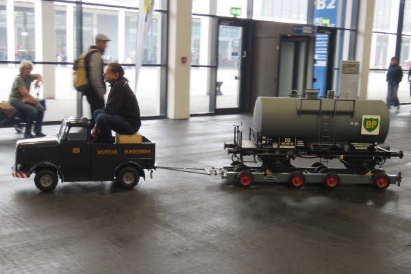 Wegen unserer kürzeren Besuchszeit von nur rund 1,5 Tagen konnten wir uns auch nur relativ kurz in den anderen Hallen der Faszination Modellbau umschauen. Es reichte für einen schneller Blick in die LEGO-Welt und auch mal zu den funkgesteuerten Baggern. Bei den Schiffen im großen Wasserbecken schauten wir vorbei als bei Wind aus Ventilatoren richtig gesegelt wurde. Etwas mehr Zeit gönnten wir uns für die ausgestellten Eisenbahnanlagen; da waren sehr interessante und schöne Sachen dabei. Geschmunzelt habe ich z.B. über die Schienenkreise in Spur Z auf einem Bierdeckel und etwas Besonderes waren die rund um eine Drehscheibe präsentierten Dampflokomotiven der Baureihe 01 in der Spur I anlässlich von 100 Jahren dieser Baureihe. 14 Stück dieser dicken Loks in 1:32 sieht man sicherlich nicht sobald wieder. |
