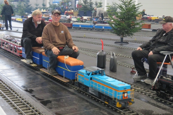 Volker half hier und da bei Problemen mit Lokomotiven. Garrelts Elektrolokomotive funktionierte zunächst, später fuhr sie nicht mehr. Volker fand die Ursache darin, dass in der Lokomotive ein 24-Volt-Relais eingebaut war, obwohl es lediglich eine 12 Volt Batterie gab. Bei voll geladenem Akku schaltete auch das 24-Volt-Relais noch korrekt. Nahm dann die Akkuspannung während des Betriebs etwas ab, funktionierte das falsche Relais nicht mehr und die Lokomotive blieb stehen. Nachdem der Grund für die Fehlfunktion bekannt war, war auch schnell eine Lösung des Problems gefunden. |