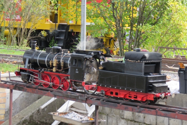 | Unter anderem habe ich erneut Hans getroffen. Er erzählte mir, dass er bei Helmut Erle in der Werkstatt zu Besuch war und seine E94 im Bau gesehen hatte; sie soll noch dieses Jahr fertig werden. Hans will beim Aufbau der Gleise zum Echtdampfhallentreffen in Friedrichshafen helfen und dann am Freitag als Besucher dabei sein. So könnten wir uns ggf. treffen, da ich ebenfalls am Freitag als Besucher zur Messe nach Friedrichshafen fahren möchte. Ein schöner und guter Eisenbahntag war das für mich in Karlsruhe. |