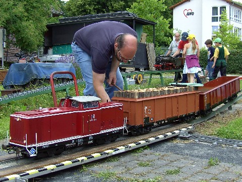 Mittels PKW-Anhänger transportieren so manche Gartenbahnfreunde ihre 5-Zoll-Fahrzeuge. Dies ist nicht Udo´s Autoanhänger, aber man sieht, wieviel Platz größere Lokomotiven benötigen. Einen PKW-Anhänger habe ich nicht, aber eine Anhängerkupplung am Auto schon. Eine erste Hürde für so einen Transportfall wäre also schon genommen. Ein Besucher in Rossdorf wollte wissen, wann ich wieder zu einem Fahrtag komme, er würde dann seine Bärensammlung gerne mal mitbringen, um diese in meinen Wagen mitfahren zu lassen. Irre, es ist schon toll, was so alles passiert. Mal sehen, wann es klappt und ich wieder in Rossdorf bin. |