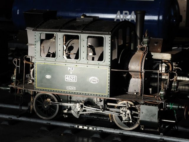 Ein ganz besonderer Hingucker war das großes Bahnbetriebswerk von Klaus Wagner und seiner Mannschaft. Es war als eigenständiger Anlagenteil auf einem Podest errichtet und strahlte deutlich mehr den Typus einer richtigen Modelleisenbahn aus; mit der Betonung auf Modell, denn auch das Drumherum um die Gleise war sehr ansprechend gestaltet. Kein Wunder, dass sich so mancher wünschte, das die Lokomotivpräsentation nicht auf der Präsentationsbühne statt finden sollten, sondern auf der Drehscheibe bei Klaus. Dafür konnten die Besucher auf der Präsentationsbühne je nachdem welches Modell sich gerade dort befand, dieses auf Rollböcken quasi direkt vor Augen in Betrieb sehen. Dieter Knupfer musste über die drei Messetage seinen Verkaufsstand betreuen, Eisenbahnfahrzeuge hatte er daher keine mit, er wäre kaum zum Fahren gekommen. Aber er hatte eine fantastische Dampfalternative für sich: ein Lokomobil, welches er problemlos für einige Stunden lang mehr oder weniger unbeaufsichtigt unter Dampf „parken“ konnte, um dieses dann ganz rasch wieder „aufzuwecken“ und fahren zu können. Offensichtlich hatte er damit recht viel Spaß. Und dabei war er auch noch recht flott unterwegs, kein einziges Foto wurde scharf. |