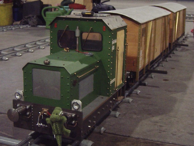 Auch beim 10. Echtdampfhallentreffen in Sinsheim vom 13. – 15. Januar 2006 konnte ich mit meinem kleinen Zug wieder dabei sein. Im Vergleich zu Sinsheim 2005 ist zu erkennen, dass meine holzbelassenen Wagen inzwischen Attrappen für Lüftungsklappen besitzen und beschriftet sind. Zudem wurde das vertikale Achsspiel für die Gummifederung vergrößert, da im Jahr zuvor ein Wagen wiederholt an einer welligen Stelle entgleiste. Dies kam nun nicht mehr vor. Dieses mal waren die Regularien etwas anders, es wurde viel genauer geprüft und kontrolliert, dass lediglich angemeldete Fahrzeuge auf der Anlage gefahren werden konnten. Mit dem Parken war es ebenso ungünstiger als letztes Jahr, denn ich musste den normalen Besucherparkplatz benutzen, aber letztlich sind dies nur zwei Punkte einer sonst großartigen Veranstaltung. Das Fahren hat mir soviel Spaß und Freude bereitet, dass ich pro Tag lediglich zweimal für etwa je eine Stunde eine Pause eingelegt habe. In diesen relativ kurzen Pausenzeiten habe ich mich auf der Messe umgesehen und unter anderem die fehlenden Teile für den dritten Wagen bei Knupfer eingekauft. Leider waren die scharfkantigen U-Profile für den Rahmen nicht direkt erhältlich, aber zufällig fand ich bei den Westerwälder Eisenbahnfreunden beim "Schrott" zwei Stück, die zwar bereits gekürzt waren, aber immer noch ausreichend lang, dass diese für meine Zwecke genügen. Die Fertigstellung des dritten Wagen bis zum ersten Freiland-Fahrtermin ist damit so gut wie sicher. |